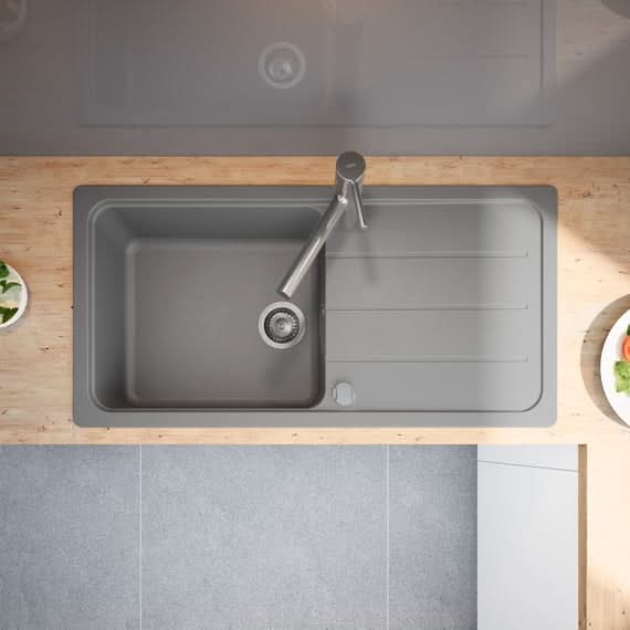 ...you enter your bathroom - clear, tidy, elegant. The matt fossil grey of the washbasin harmonises with natural materials and modern fittings. Every detail looks well thought out. And you know: this washbasin was the right choice.